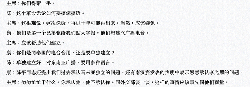 图8.陈平与毛泽东同志对话记录(图片来源:https://www.marxists.org/chinese/maozedong/mia-chinese-mao-19670117.htm)